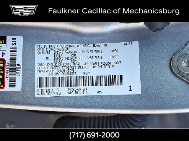 Elevate Your Driving Experience with the Powerful 2019 Toyota Tundra SR5 4.6L V8Discover the ultimate in capability and comfort with the 2019 Toyota Tundra SR5 4.6L V8. This impressive full-size pickup boasts a robust 4.6L V8 engine, delivering the power and performance you demand. Equipped with 4-wheel drive, this Tundra is ready to tackle any terrain, whether you're navigating rugged job sites or embarking on thrilling adventures.- All Weather Floor Liner & Door Sill Protector Package- Spray-On Bedliner- 6 Speakers- AM/FM radio: SiriusXM- CD player- Radio: Entune Audio Plus AM/FM/HD Radio w/CD- SIRIUSXM Satellite Radio- HomeLink Universal Transceiver- Remote keyless entry- Auto High-beam Headlights- Fully automatic headlights- Heated door mirrors- Auto-Dimming Rear-View Mirror- Compass- 18" x 8J Styled Steel WheelsThe Tundra's spacious interior offers ample room for passengers and cargo, with a versatile split folding rear seat and a rear under-seat storage compartment for added convenience. Enjoy the comfort of the fabric seat trim and the added security of features like dual front impact airbags, dual front side impact airbags, and an occupant sensing airbag.Designed with your safety in mind, the Tundra boasts a suite of advanced safety technologies, including ABS brakes, electronic stability control, and a rear-view camera. Stay connected on the go with the Entune Audio Plus system, featuring SiriusXM satellite radio and a HomeLink universal transceiver.Whether you're tackling tough jobs or embarking on unforgettable adventures, the 2019 Toyota Tundra SR5 4.6L V8 is the perfect companion. Experience the perfect blend of power, capability, and comfort schedule your VIP appointment today and discover the difference for yourself.At Faulkner Cadillac we take pride in offering an industry leading purchasing experience which can be executed in multiple ways. Complete your purchase 100% online start your process online and we will meet you in the process at any point in-store, or call us today at 717-691-2000 to schedule your VIP appointment. Faulkner Cadillac is located on the Carlisle Pike next to Cumberland Valley High School. Our dealership proudly services Cumberland County, PA; Dauphin County, PA; Franklin County, PA; Adams County, PA; York County, PA; Perry County, PA; Juniata County, PA; Mifflin County, PA; Huntingdon County, PA; and Lancaster County, PA.We also proudly serve the surrounding major cities including Harrisburg, PA and Mechanicsburg, PA, as well as many more communities throughout the greater Central Pennsylvania region.