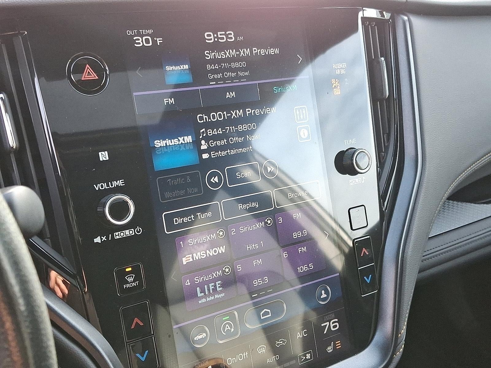- Radio: Subaru STARLINK 11.6" Multimedia Plus Sys -inc: AM/FM stereo, HD Radio, multi-touch gesture high resolution display screen, voice activated controls, Bluetooth® audio streaming and hands-free phone connectivity w/SMS text messaging (refer to subaru.com for cell phone compatibility), Near Field Communication (NFC), iPod control capability, SiriusXM All Access radio (4 months free trial/subscription required after), SiriusXM Travel Link (4 months free trial/subscription required after), smartphone integration: Android Auto, Apple CarPlay and STARLINK cloud applications (refer to subaru.com for app availability), USB and Over The Air (OTA) audio system update, 6 speakers, 3.5mm auxiliary input jack and dual USB input ports