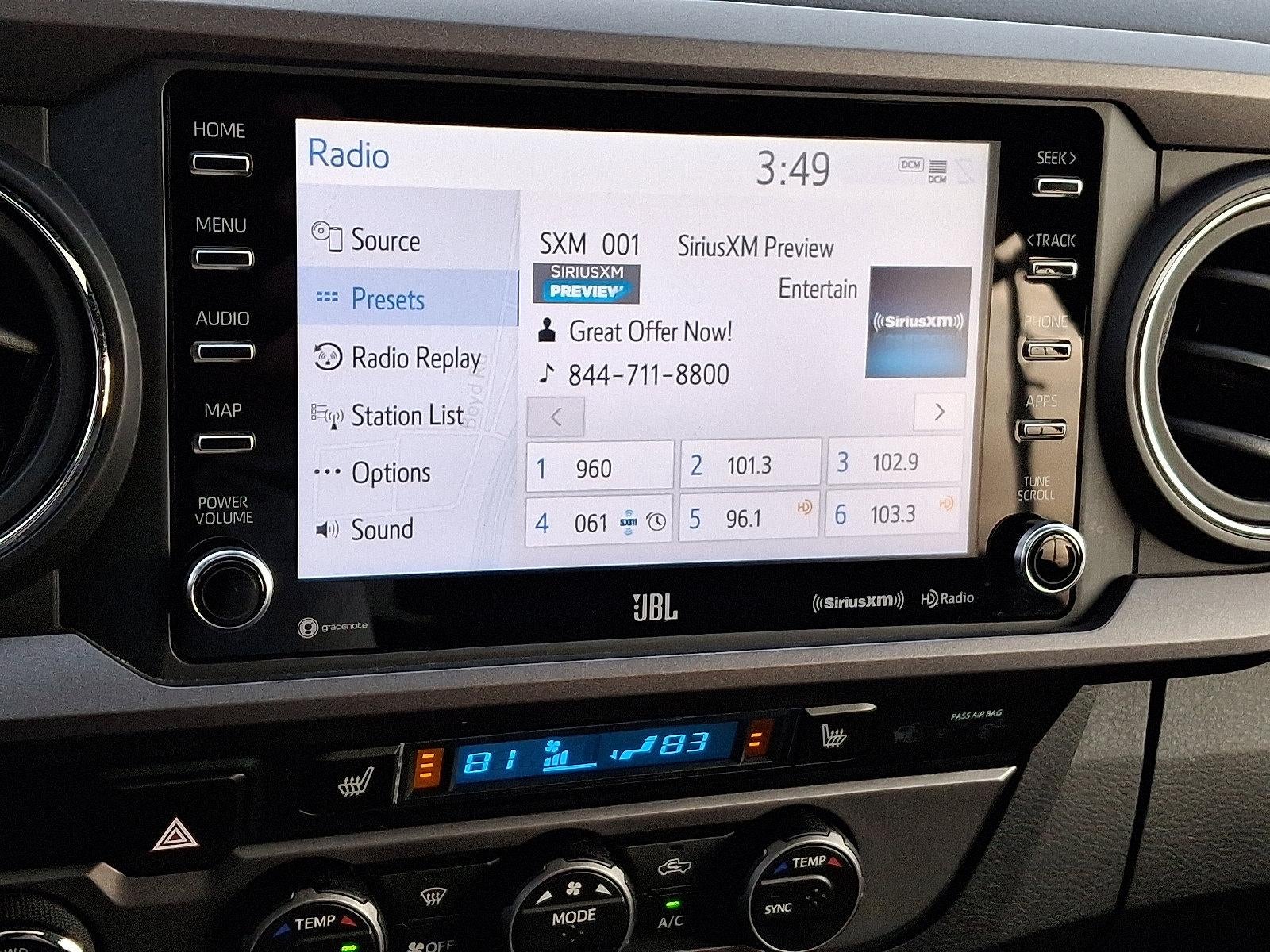 - Radio: Audio -inc: 6 speakers, 8" touchscreen, Android Auto, Apple CarPlay and Amazon Alexa compatible, hands-free phone capability, advanced voice recognition and music streaming via Bluetooth® wireless technology, SiriusXM w/3-month all access trial and Connected Services (Safety Connect w/1-year trial and Wi-Fi Connect w/up to 2 GB within 3-month trial), See toyota.com/audio-multimedia for details